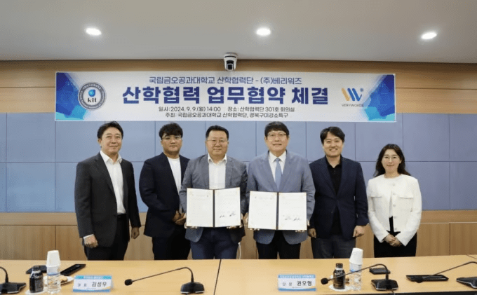 국립금오공과대학교 산학협력단이 지난 9일 교내 산학협력관에서 ㈜베리워즈와 탄소중립 사업 모델 및 기술 개발을 위한 업무협약을 체결했다고 10일 밝혔다.